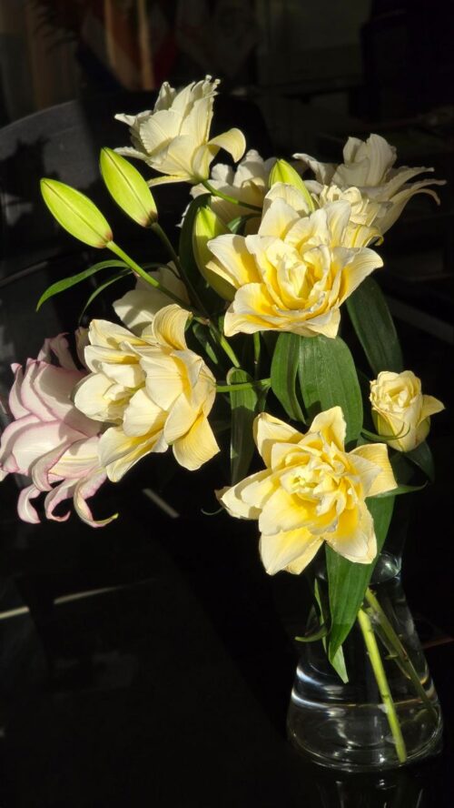 رزلیلی زرد را میتوانید در گلدان شیشهای، ترکیب با گلهای صورتی و سفید یا حتی دستههای VIP برای مراسم استفاده کنید. 🌿